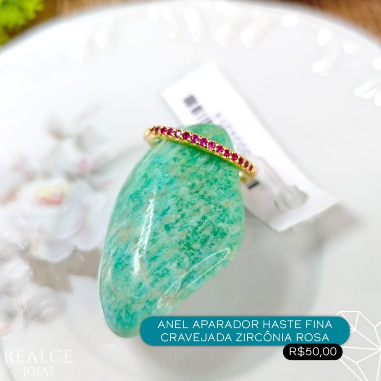 Anel aparador haste fina cravejada com zircônia rosa escuro#realcejoias #anelaparador #anelhastefina #anelcravejado #zircôniarosa #aneldelicado #joiasfemininas #anelcomzircônia #anelrosaescuro #anelestiloso #acessoriosfemininos