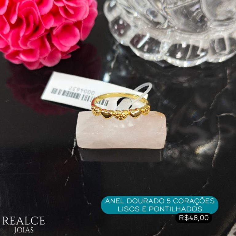 Anel dourado 5 corações lisos e pontilhados#realcejoias #aneldourado #anel5coracoes #anelcoracoeslisos #anelcoracoespontilhados #acessoriofeminino #anelestiloso #joiasdelicadas