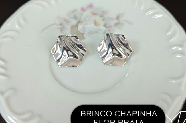 Brinco chapinha flor prata
