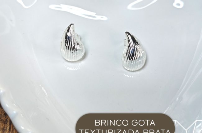 Brinco gota texturizada prata