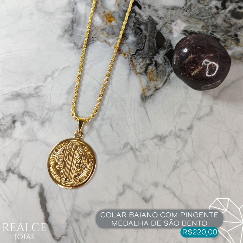 Colar baiano com pingente medalha de são bento#realcejoias #colar #baiano #pingente #medalha #saobento