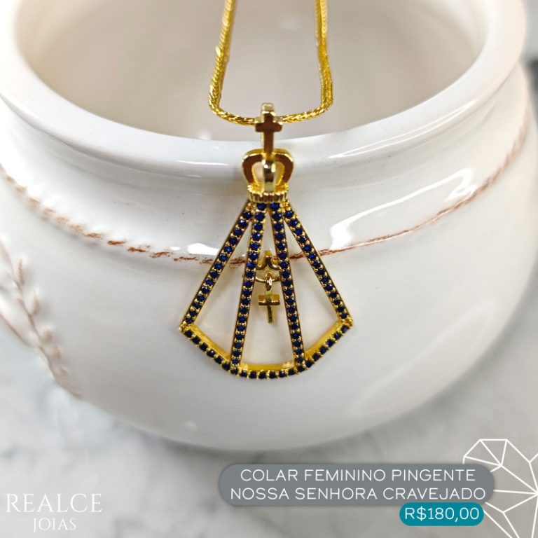 Colar feminino pingente Nossa Senhora cravejado#realcejoias #colar #feminino #pingente #NossaSenhora #cravejado