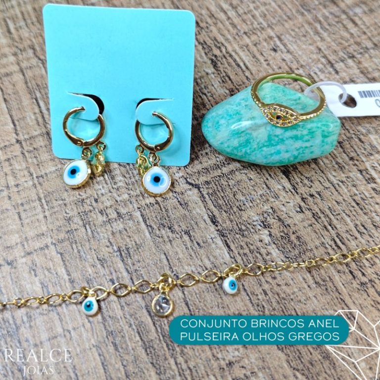 #realcejoias #conjunto #olhosgregos #semijoias #joiaslindas #ouro18k