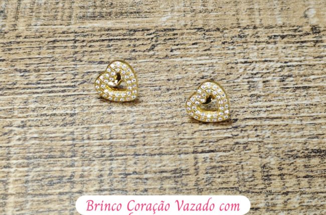 Brinco Coração Vazado com Micro Zircônias